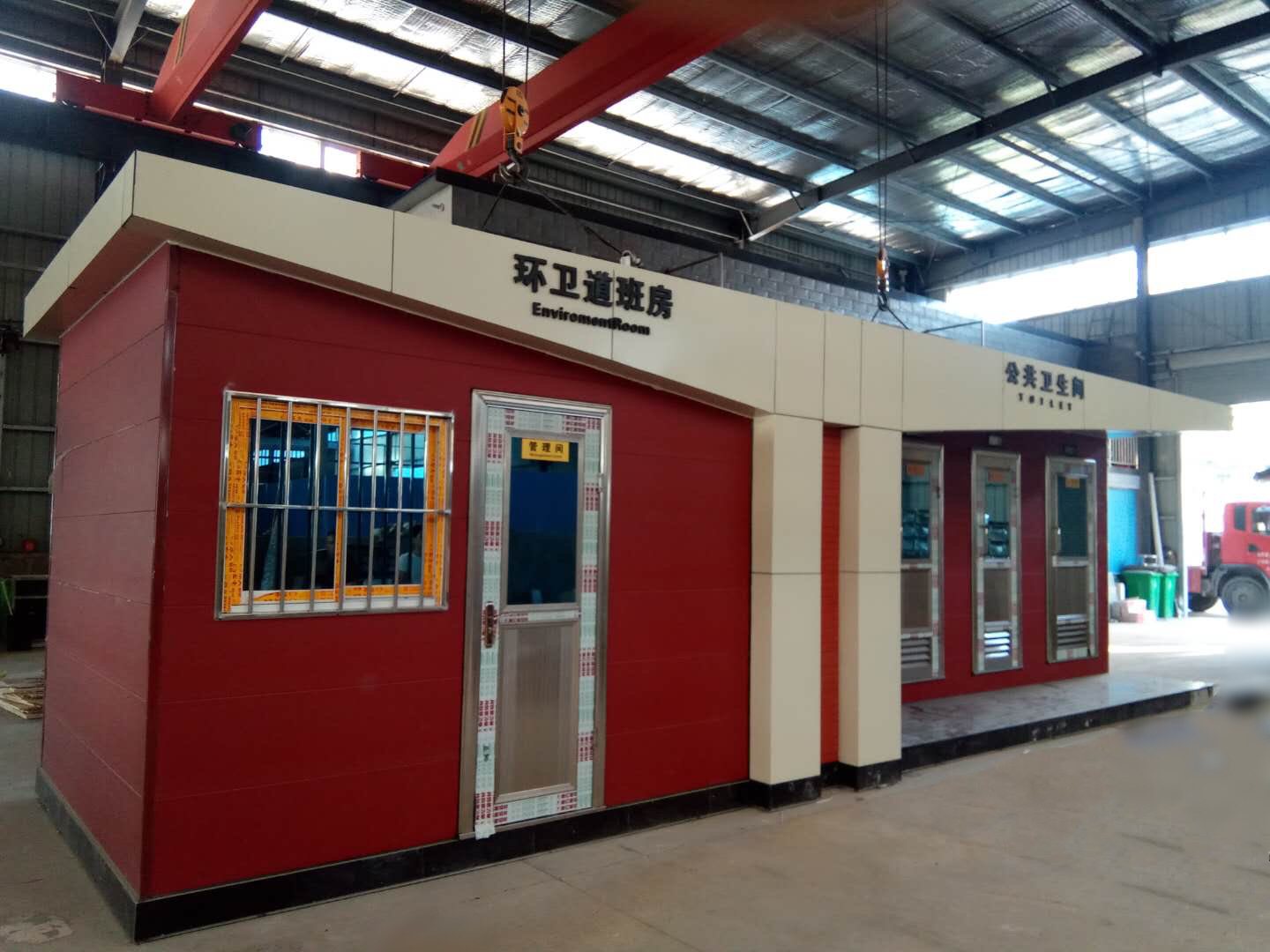 1、房體結(jié)構(gòu): 采用輕鋼龍骨結(jié)構(gòu),鋼材全部使用國家標(biāo)準(zhǔn)鍍鋅鋼材。根據(jù)房體的大小特選用國標(biāo)方管(50-100)焊接而成。鍍鋅管厚度為2.8mm,方管經(jīng)過除銹后進(jìn)行鍍鋅、防腐處理。這樣就會延長廁所使用壽命。