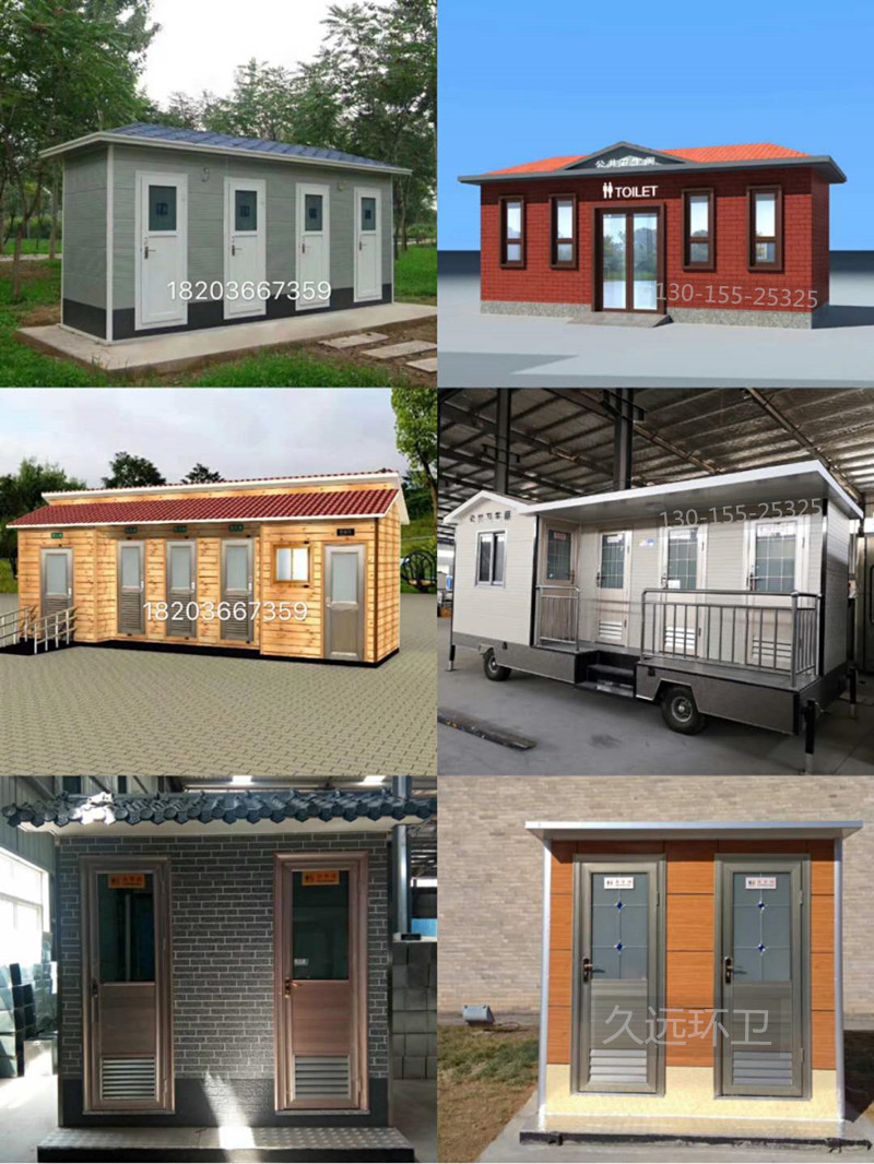 久遠環(huán)衛(wèi)移動衛(wèi)生間廠家直銷,可根據(jù)用戶需求定制各種顏色、尺寸、造型、款式、多蹲位等移動廁所130-155-25325