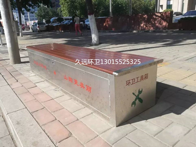 保潔員工具箱座椅是一種新型市政街道存放保潔員和環(huán)衛(wèi)工人工具、用具的多功能箱子,它既是工具箱,也是座椅。可以給保潔員提供一個(gè)日常休息和放置工具的儲(chǔ)物箱,也可以給路人提供一個(gè)臨時(shí)、短期休息的坐凳。對(duì)保潔員的日常保潔工具的存放和日常用品起到了規(guī)范管理作用,美化城市環(huán)境,提升城市文明。