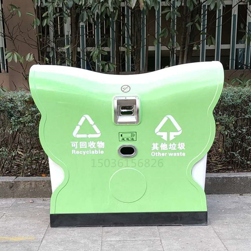 新款模壓耐高溫蝴蝶式垃圾桶果皮箱,由頂蓋、側(cè)板、底座、支架、內(nèi)膽、煙蒂收集盒、廢電池回收盒等附配件組成。