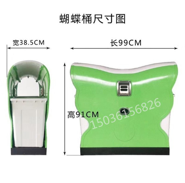 蝴蝶垃圾桶外型尺寸規(guī)格:長980mm*寬380mm*高900mm