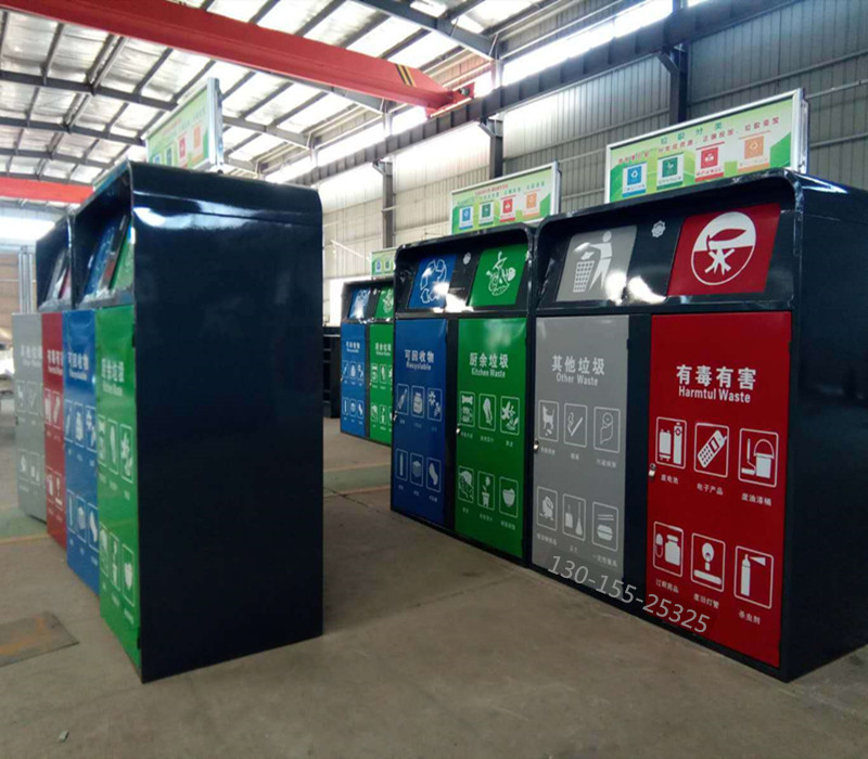 分類垃圾桶整體采用優(yōu)質(zhì)冷軋鋼板加工而成,表面經(jīng)過除油、噴砂防銹處理后,再進行酸洗磷化處理;表面清理干燥后整體進行靜電噴涂或烤漆處理,靜電噴涂是經(jīng)過流水線高溫固化爐固化后再出爐冷卻,加工后的塑粉附著力強,不易剝落。