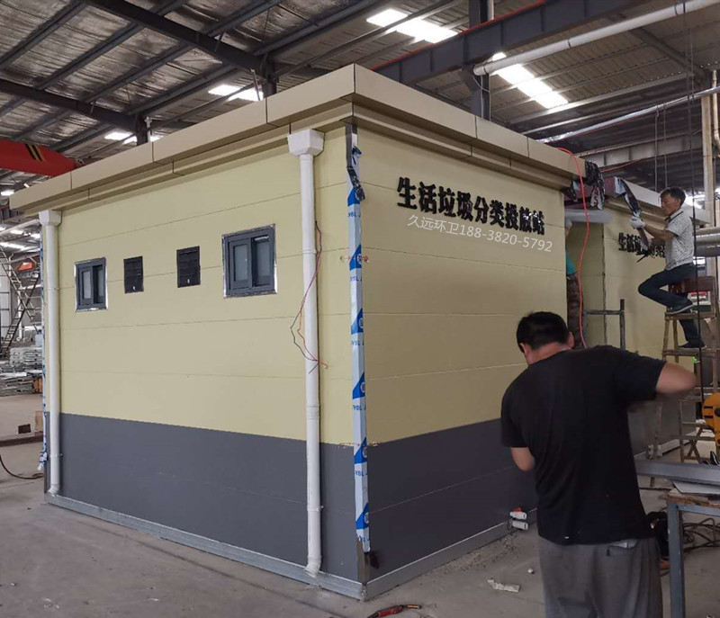 生活垃圾分類投放站廠家定制——久遠環(huán)衛(wèi)是一家集研發(fā)生產(chǎn)、銷售服務(wù)為一體的大型環(huán)衛(wèi)設(shè)備生產(chǎn)企業(yè),公司注冊資金5000萬元,占地面積50余畝,擁有現(xiàn)代化生產(chǎn)車間1萬余平方米,辦公面積1000余平方米,在職員工200多人,具有雄厚的技術(shù)及生產(chǎn)實力。 公司主要生產(chǎn)垃圾壓縮中轉(zhuǎn)站、垃圾分類收集房、環(huán)保移動公廁、各類垃圾桶果皮箱、環(huán)衛(wèi)工具箱、環(huán)衛(wèi)道班房、崗?fù)?、休閑座椅、等公共環(huán)衛(wèi)設(shè)施。